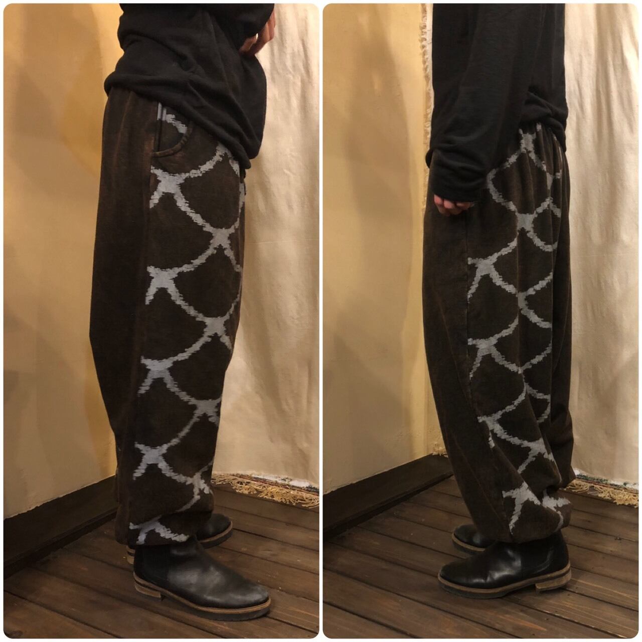 ウォッシュ加工ハーフプリント裏起毛サルエルパンツ N1912P002