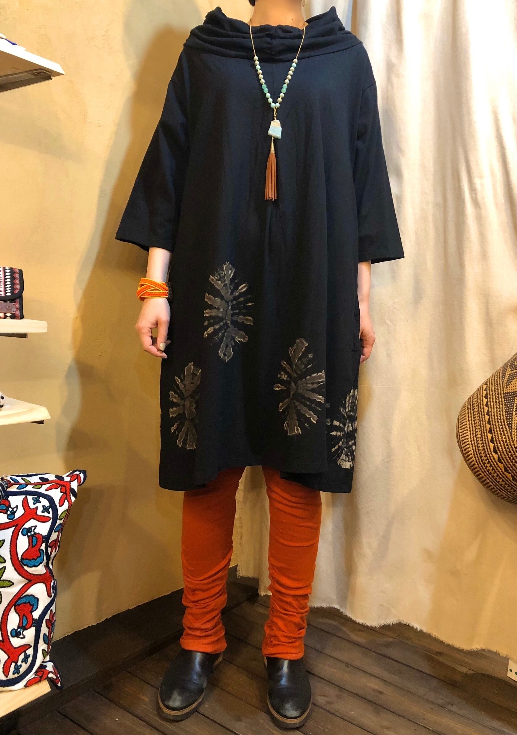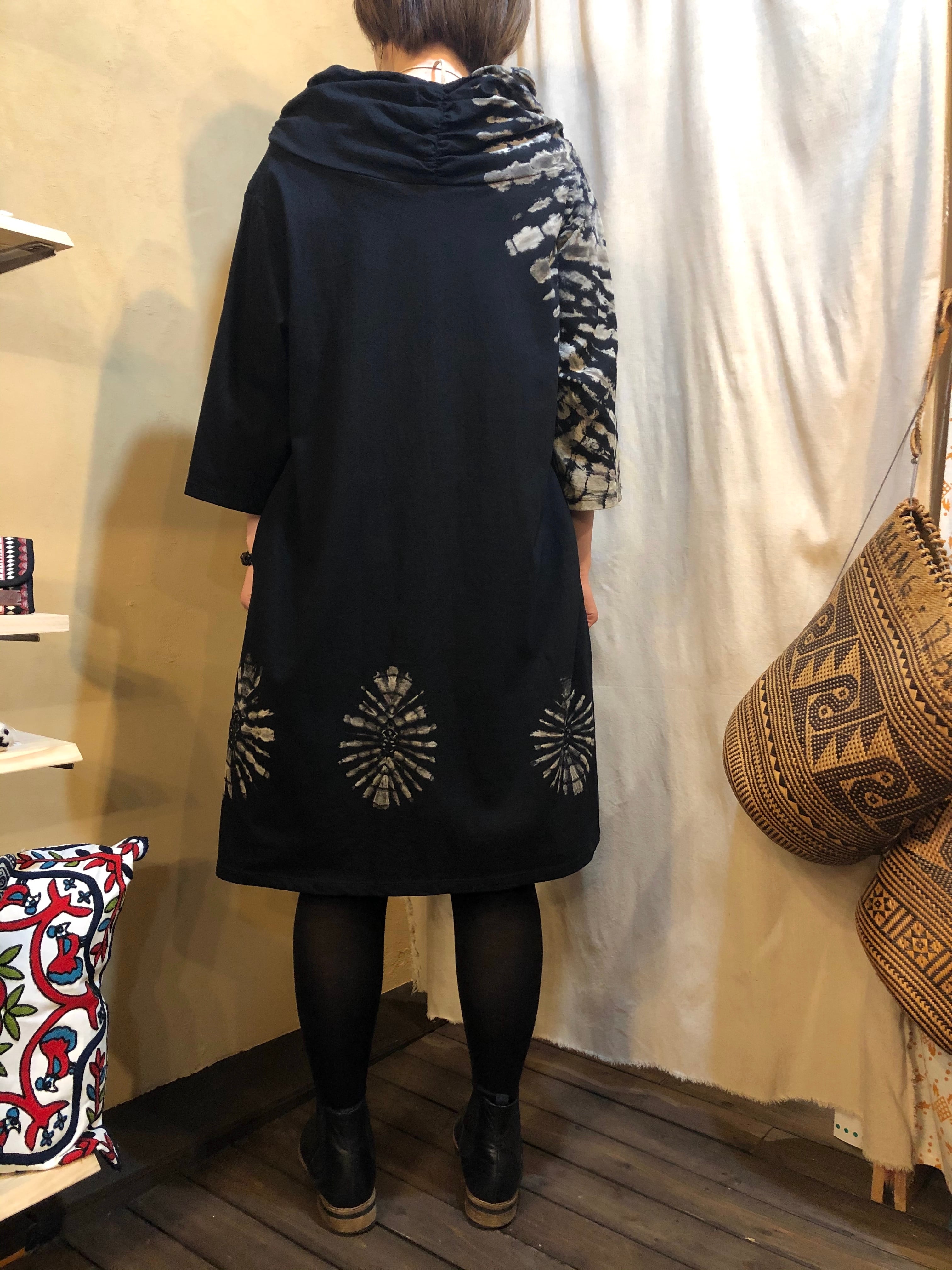 絞り染め綿くしゅくしゅネックチュニック T1910D007