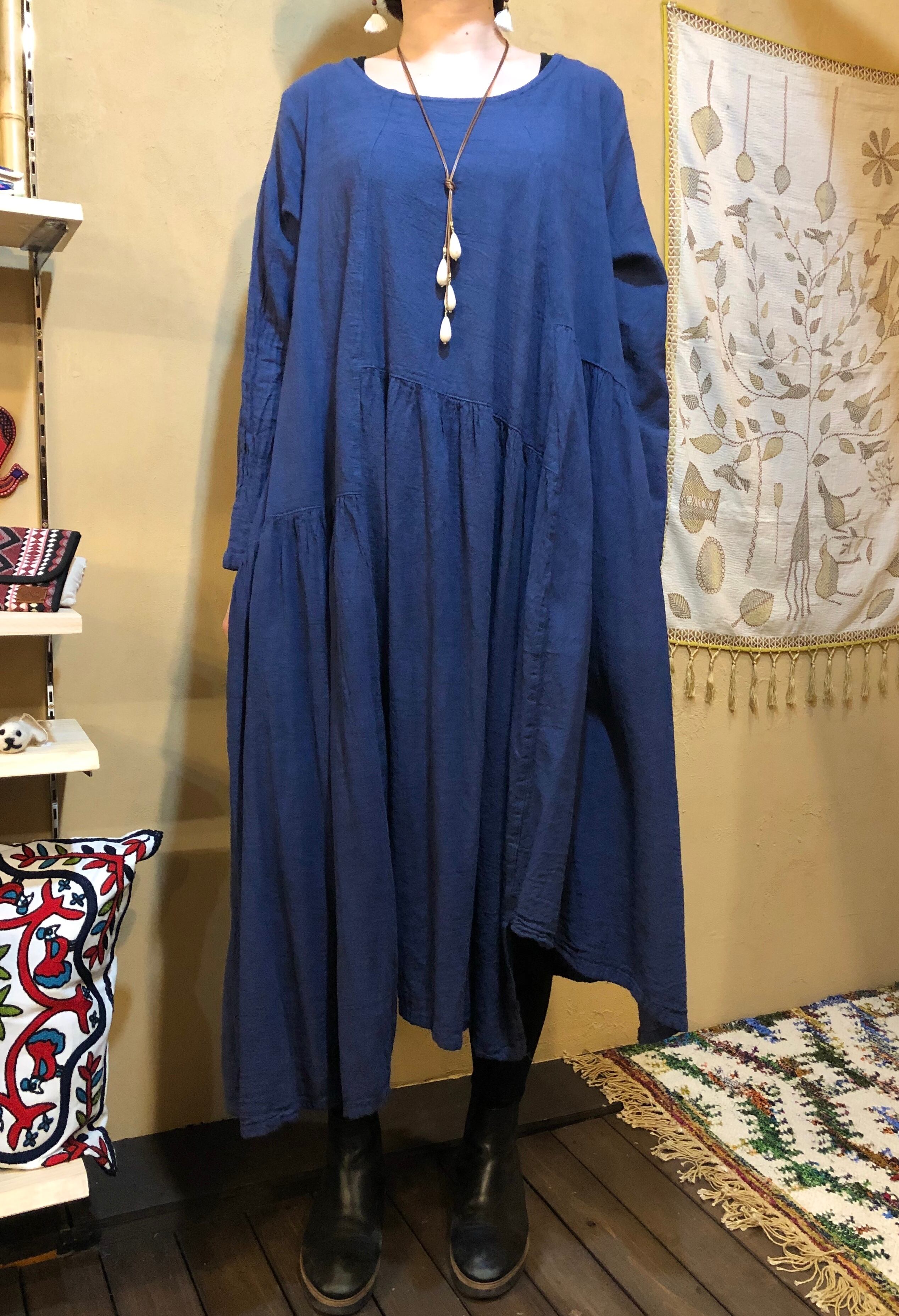 洗いざらしのような気持ちの良い綿布をたっぷり使ったワンピースです。