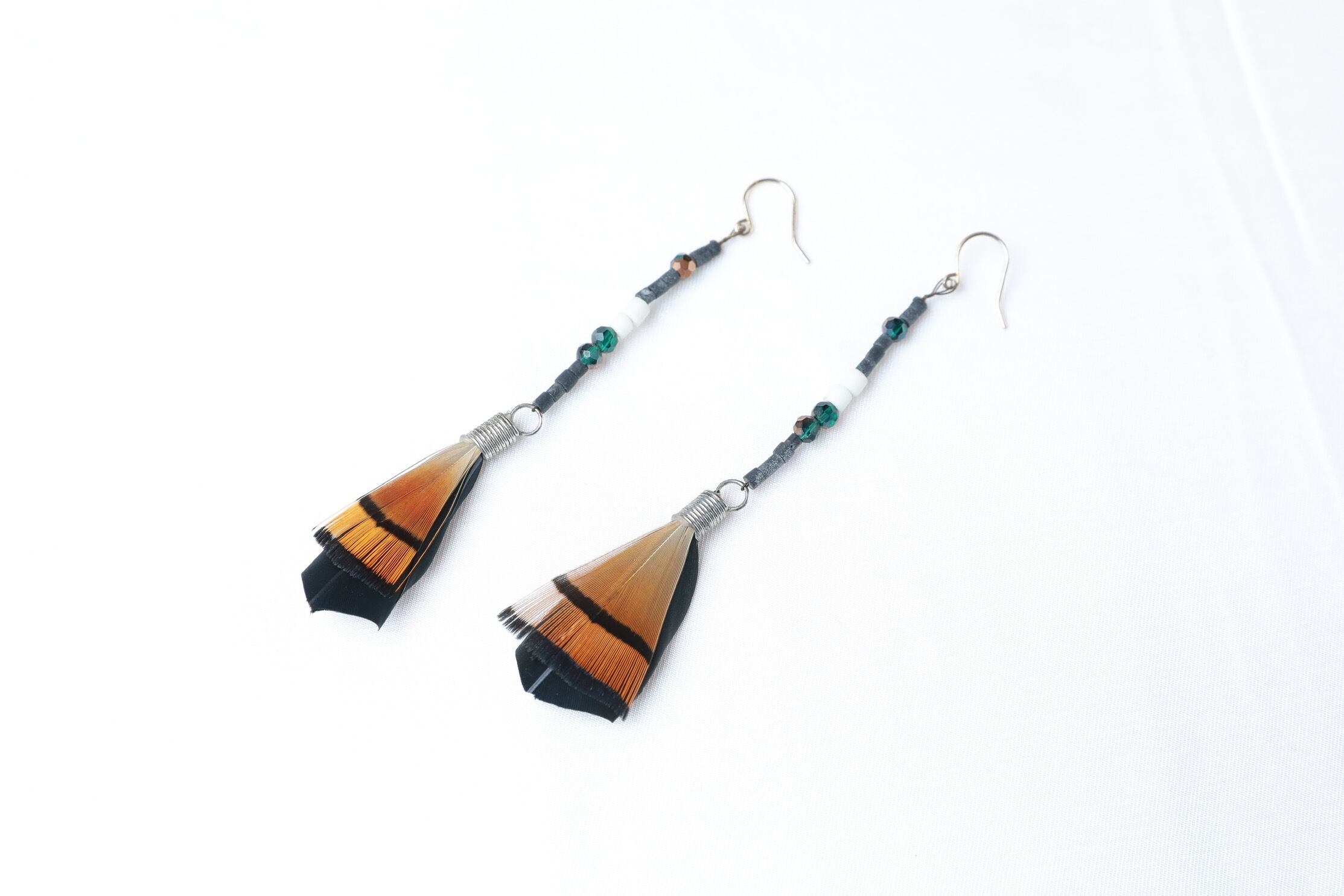素材:羽、アンティークストーンビーズ、クリスタルビーズ、合金