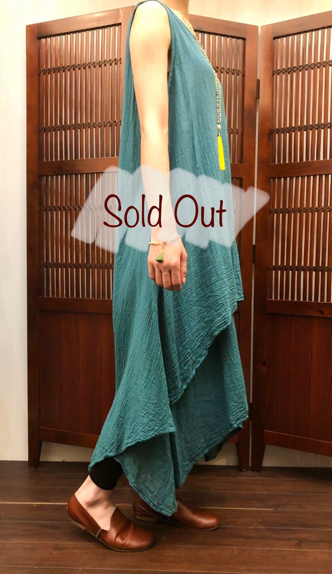 綿ノースリーブ無地レイヤードワンピース①